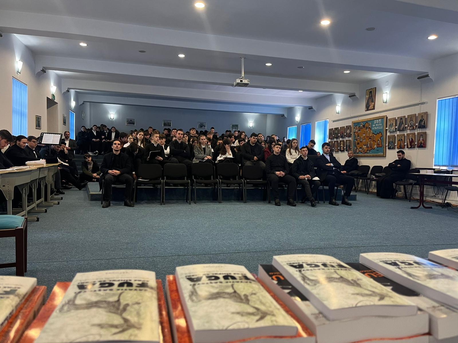 Într-un cadru natural deosebit, stăpânit de o liniște adâncă,elevii au citit câteva rânduri din articolul „Ce au în comun Hristos și un pelican”, din cartea „Miride și mirinde”, scrisă de arhimandritul Mihail Daniliuc, din care elevii au primit câte un exemplar. Au urmat apoi, discuții în particular cu fiecare elev despre activitatea de la Seminar și modalități de îmbunătățire a rezultatelor școlare.