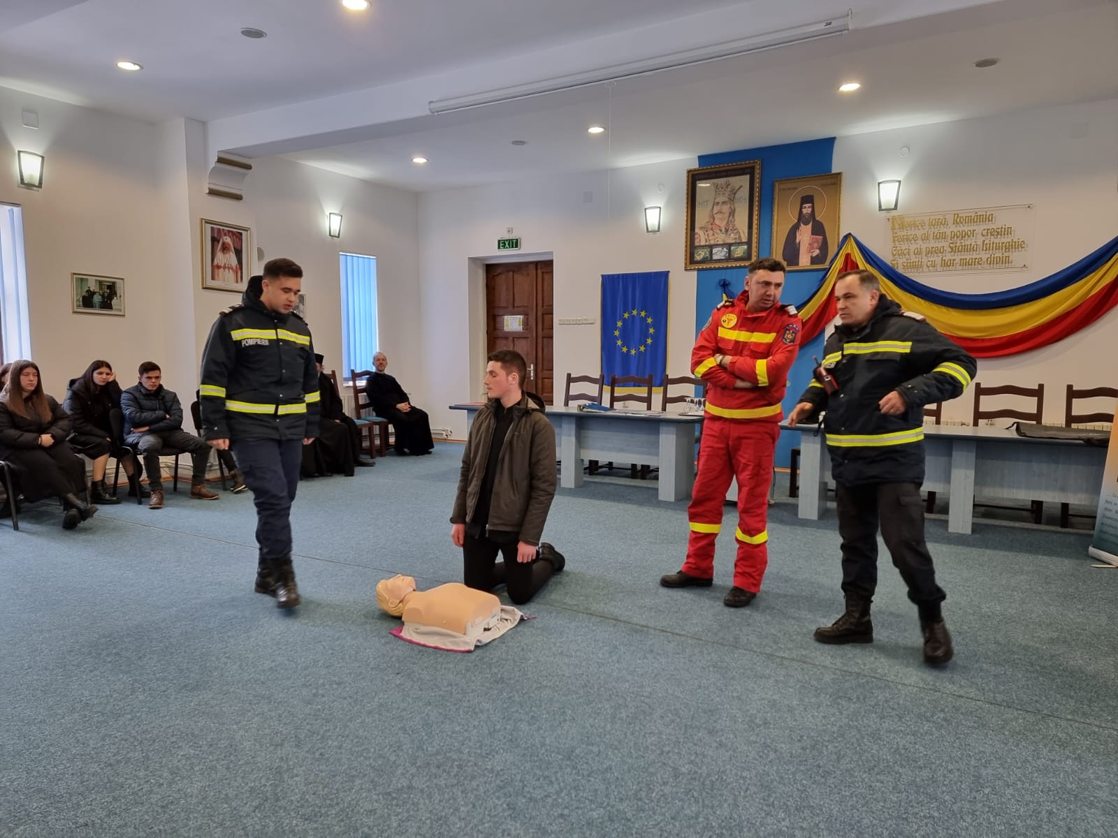 Un paramedic SMURD a prezentat noțiuni de prim ajutor pentru situații de leșin, înec cu bol alimentar sau producere a unui accident rutier.