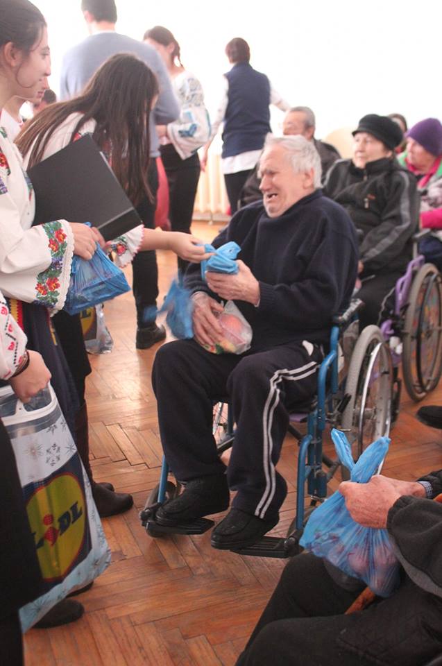 Așa că, un grup de elevi seminariști , coordonați de profesorii Apetroaei Elena și Cucolea Aurelian a organizat o strângere de fonduri pentru a oferi 70 de pachete acestor bătrâni – “Leru-i ler” a ajuns la sufletul lor. Muțim de uimire: acești bunici „ai noștri” au lacrimi de bucurie împletite cu tristețea din ochi.